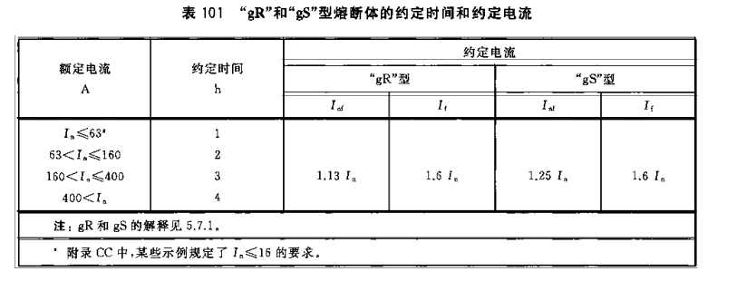 注:熔体的热反应时间可能很短,以致在这非正弦电流的条件下熔体的熔断不能仅根据有效值电流来估算。这种情况特别出现在频率较低和电流出现较突出的峰值,而峰值间出现相当长的小电流。例如,在变频和牵引的使用场合。
